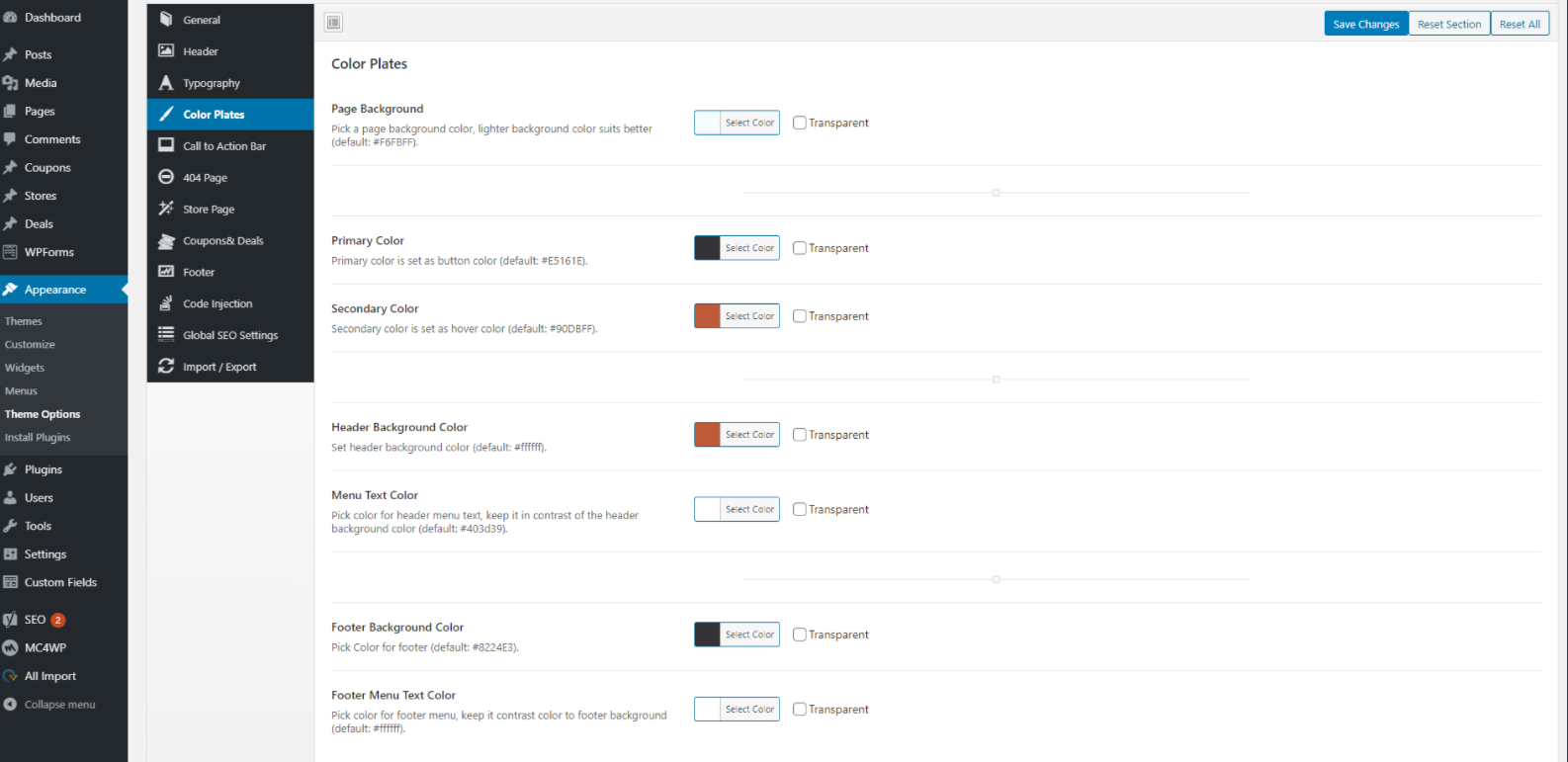 Go to My Sites -> CouponORB -> Dashboard -> Appearance -> Theme Options -> Color Palettes