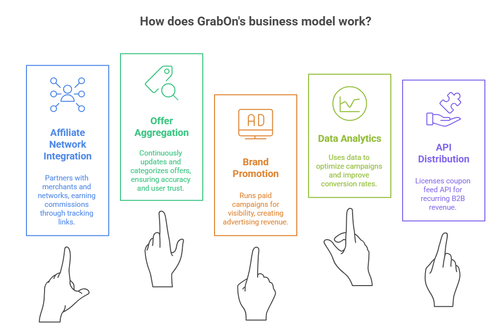 GrabOn business model combines multiple revenue streams — all built around affiliate marketing and partner monetization.