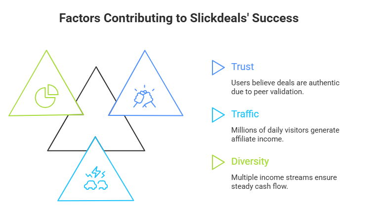 By diversifying across these streams, Slickdeals maintains profitability even when affiliate commissions fluctuate seasonally.
