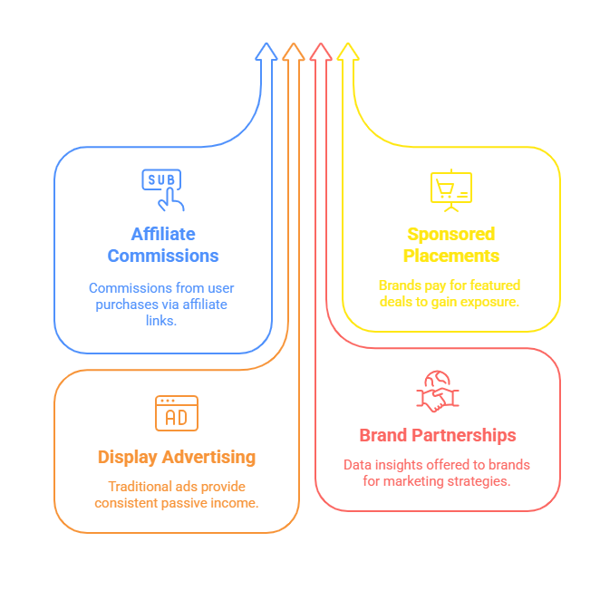 | Sponsored Deals / Brand Promotions | Merchants pay for premium placement of deals within community feeds, newsletters, and homepage. | High-margin advertising |